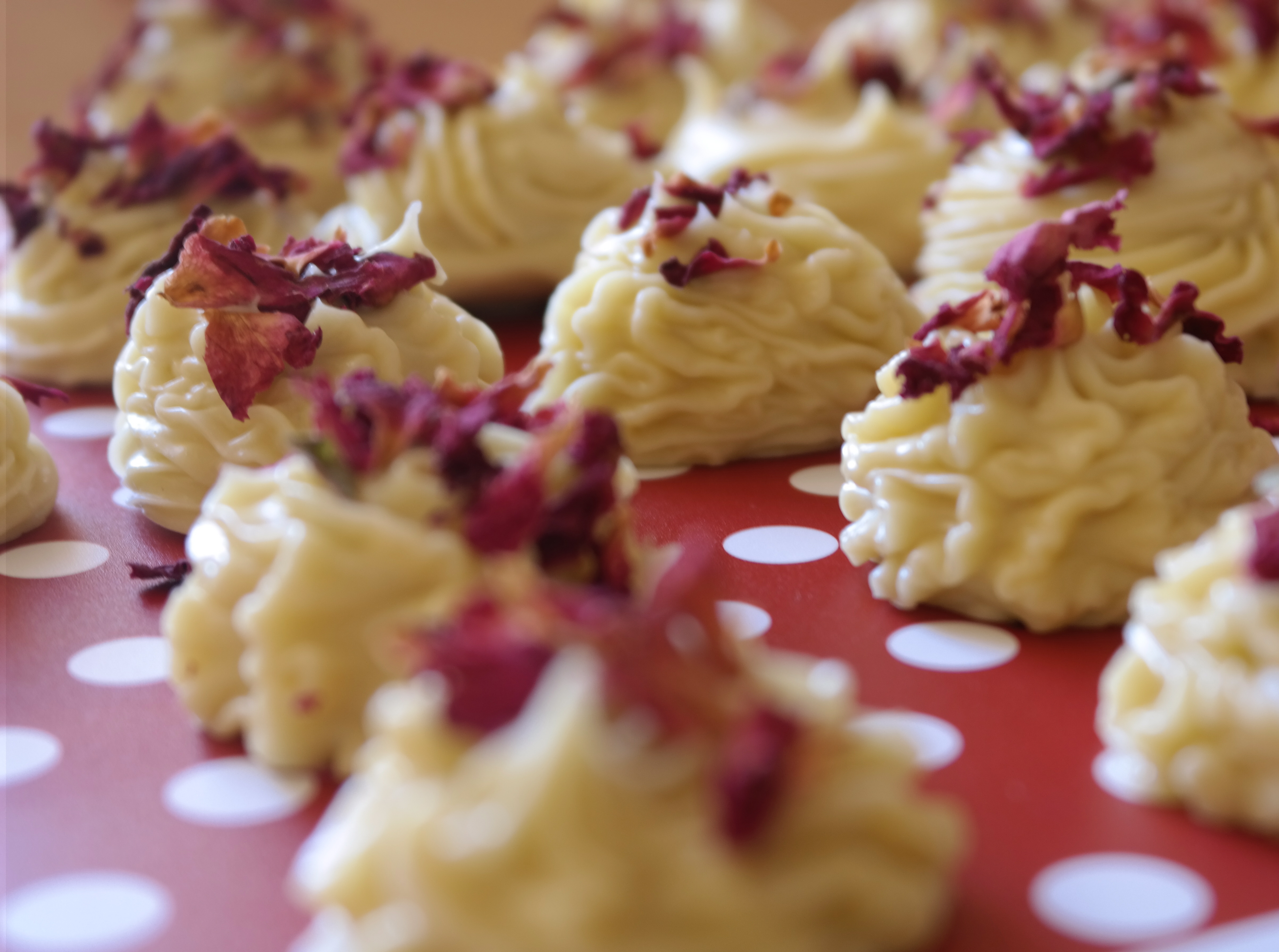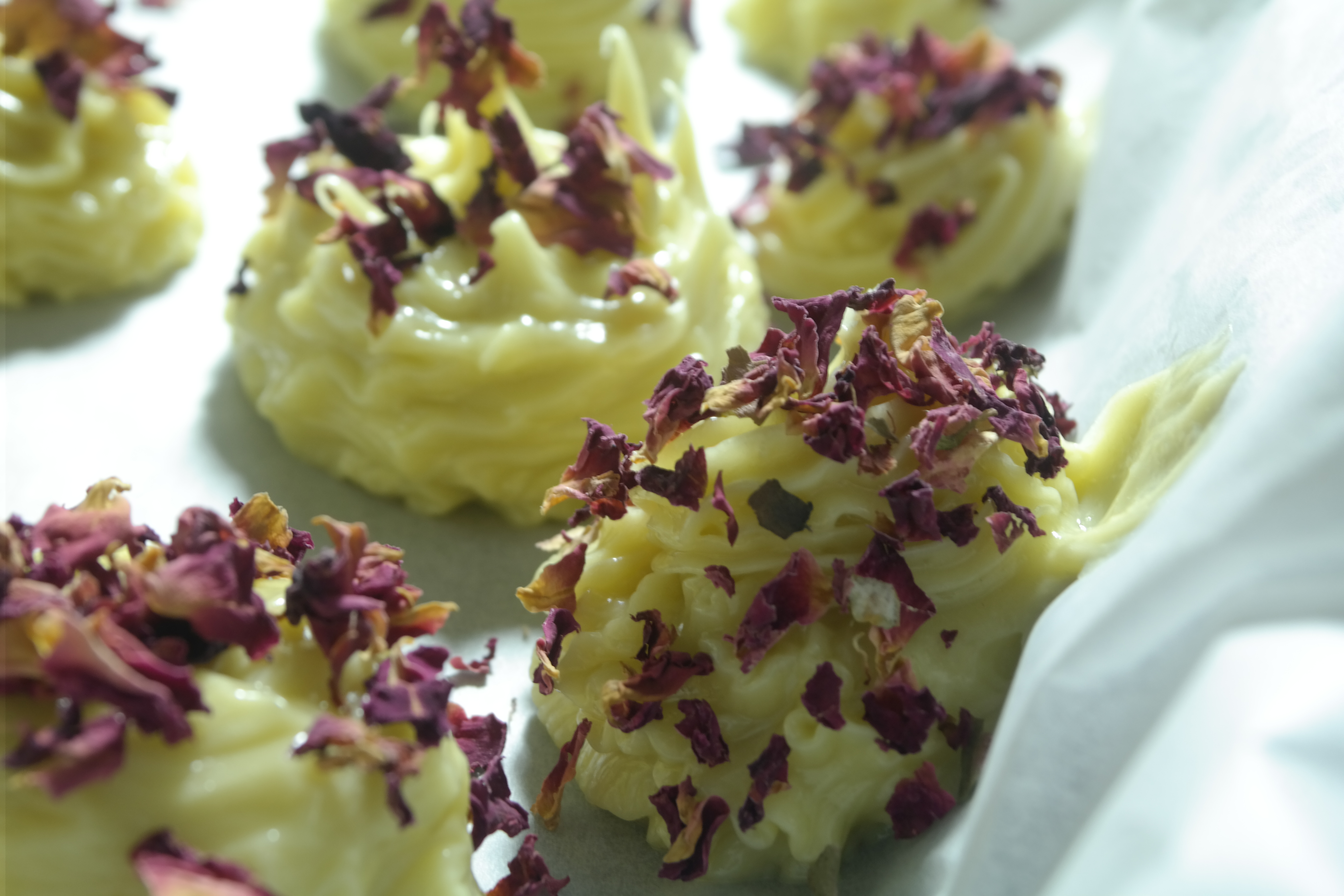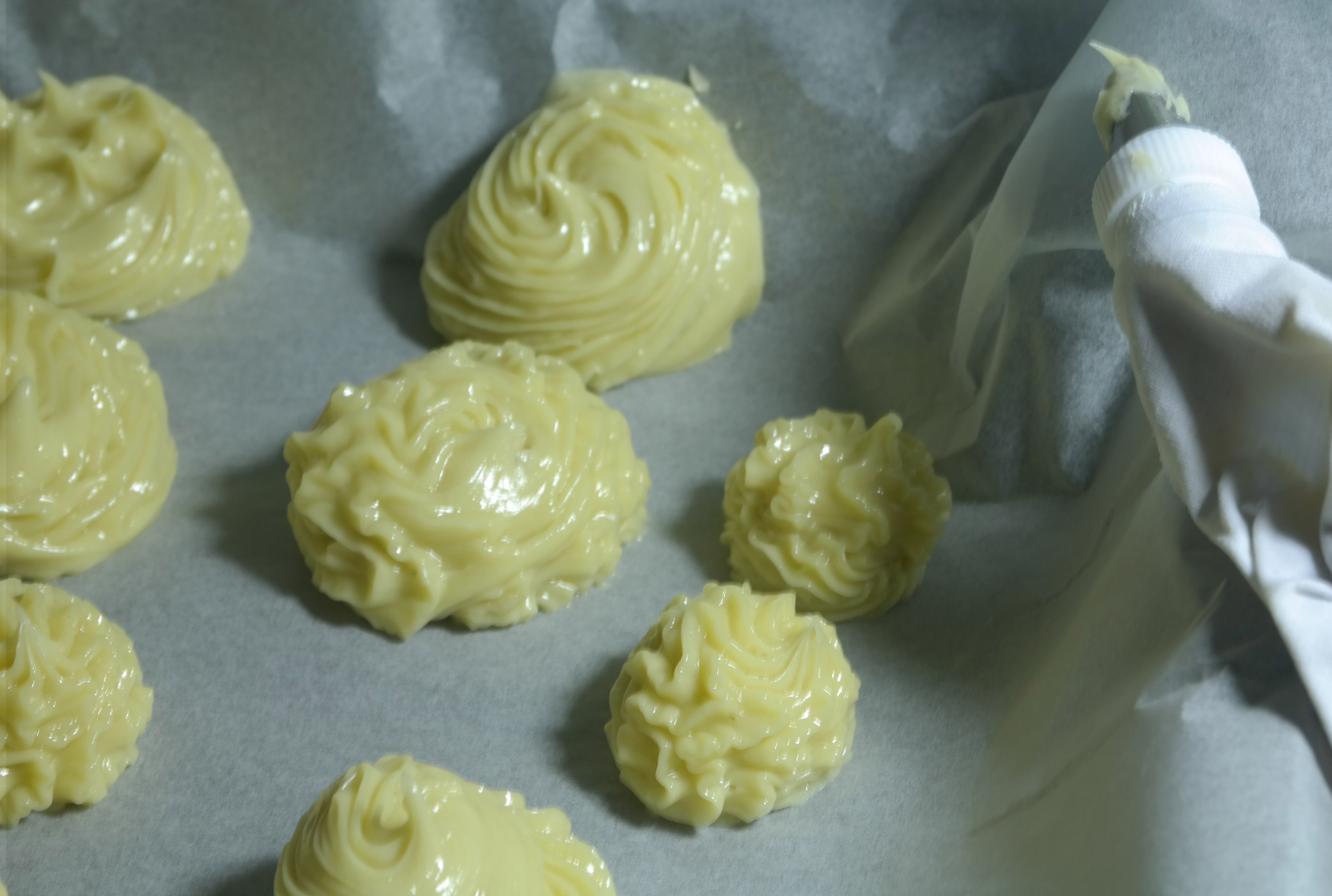 - Then just like butter cream icing scoop the whipped butter in a piping bag and with a nozzle of your choice start piping the whipped butter onto your already prepared tray or plate. This does not have to be prefect at all.