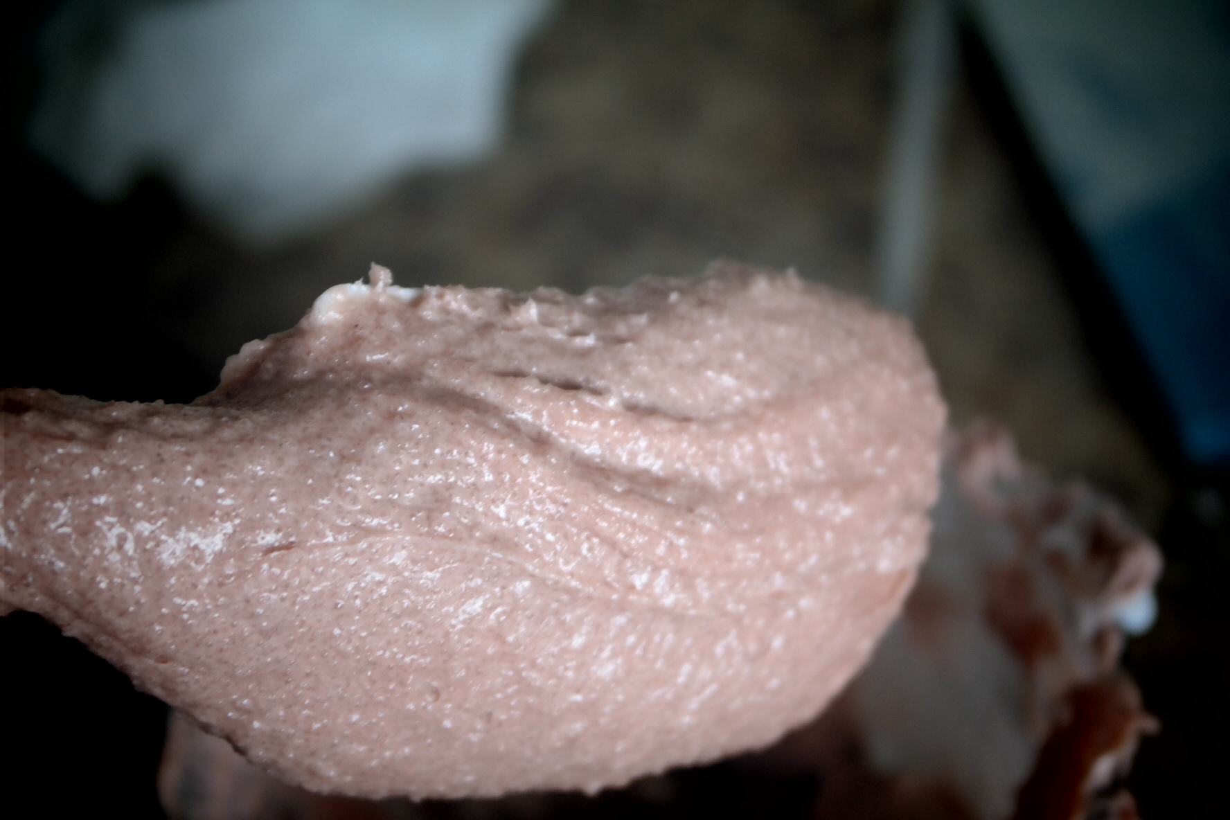 After 2 minutes, change the spoon to a stick blender or a milk frother and blend for 5 minutes. This is the stage I added my pink clay and it blended seamlessly.