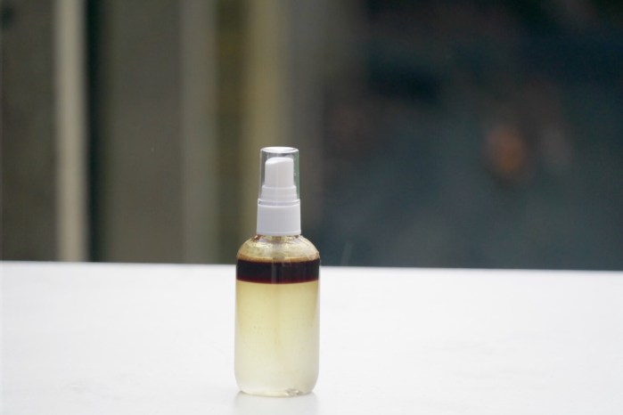 Because water and oil don’t mix, you will have to shake every time you want to use it, then just spray it onto the skin and pat it dry. Your skin will soak up the liquid, and the oil will lock it in at the same time. The skin is left feeling so soft and fresh. I make it in small batches of 100ml bottles because of no preservatives and the presence of water, and store it in a cool, dry place. I use this on my face and body, day and/or night.