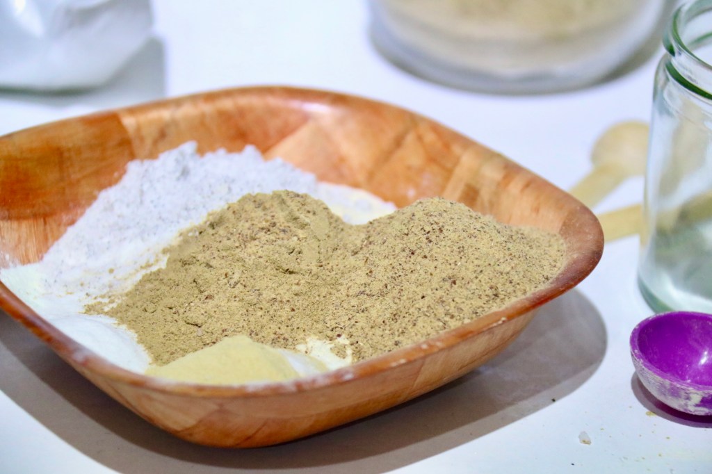 Because I wanted all natural cleanser, and I kinda like a bit of a foamy effect in my cleansing grains, Organic soap nut was the prefect thing. I crushed and blended whole soap nuts and even sieved to make the powder.