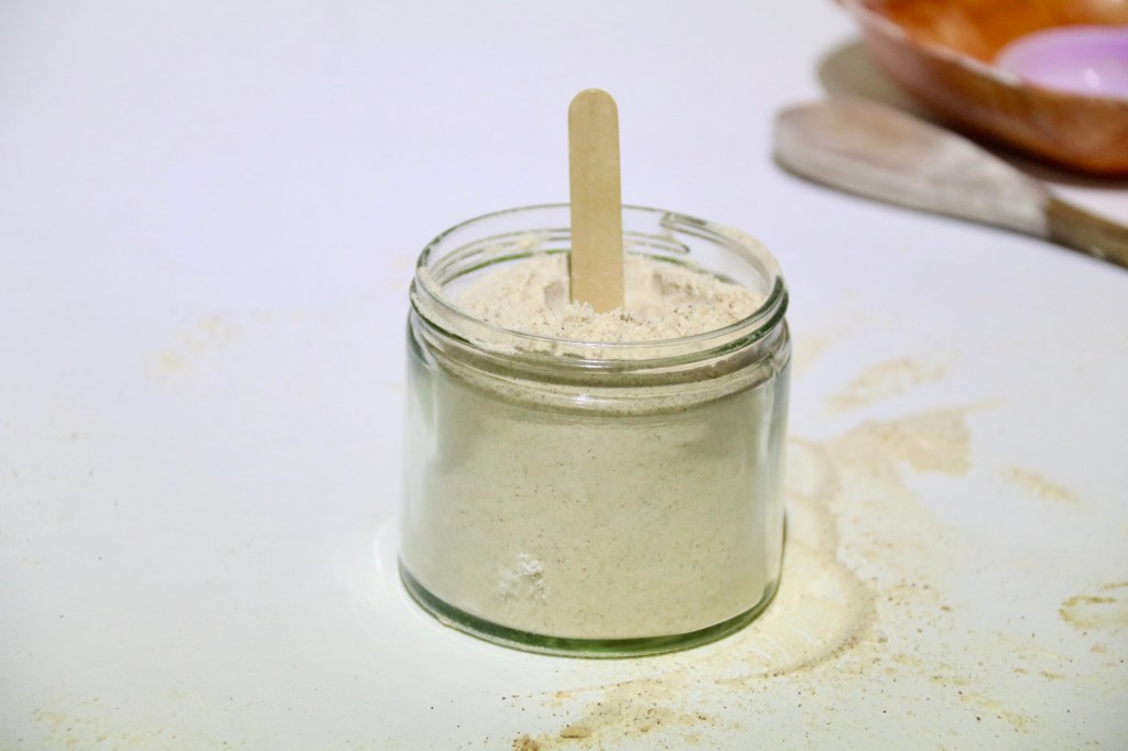 Scoop out the desired amount in your palm and add water to make into a paste.