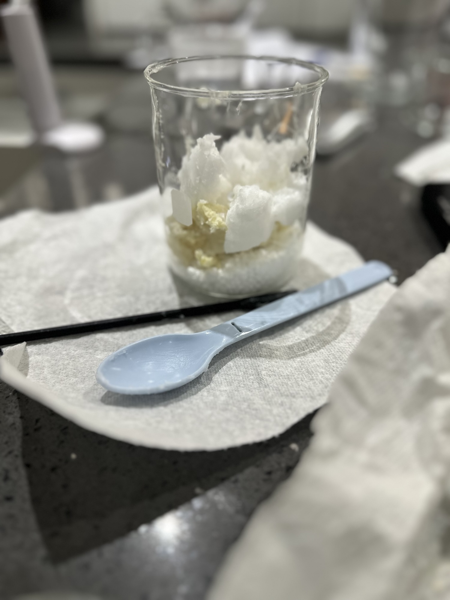 Measure and weigh the water phase (Phase 1) in a heat-safe glass jar. You need a proper scale for this part.
