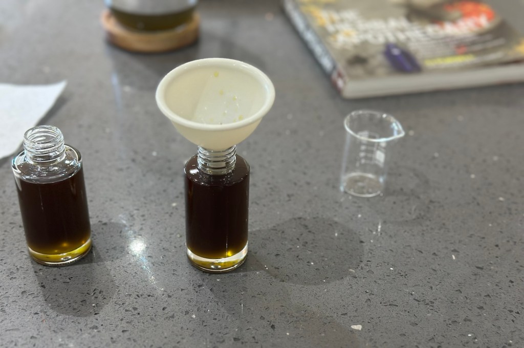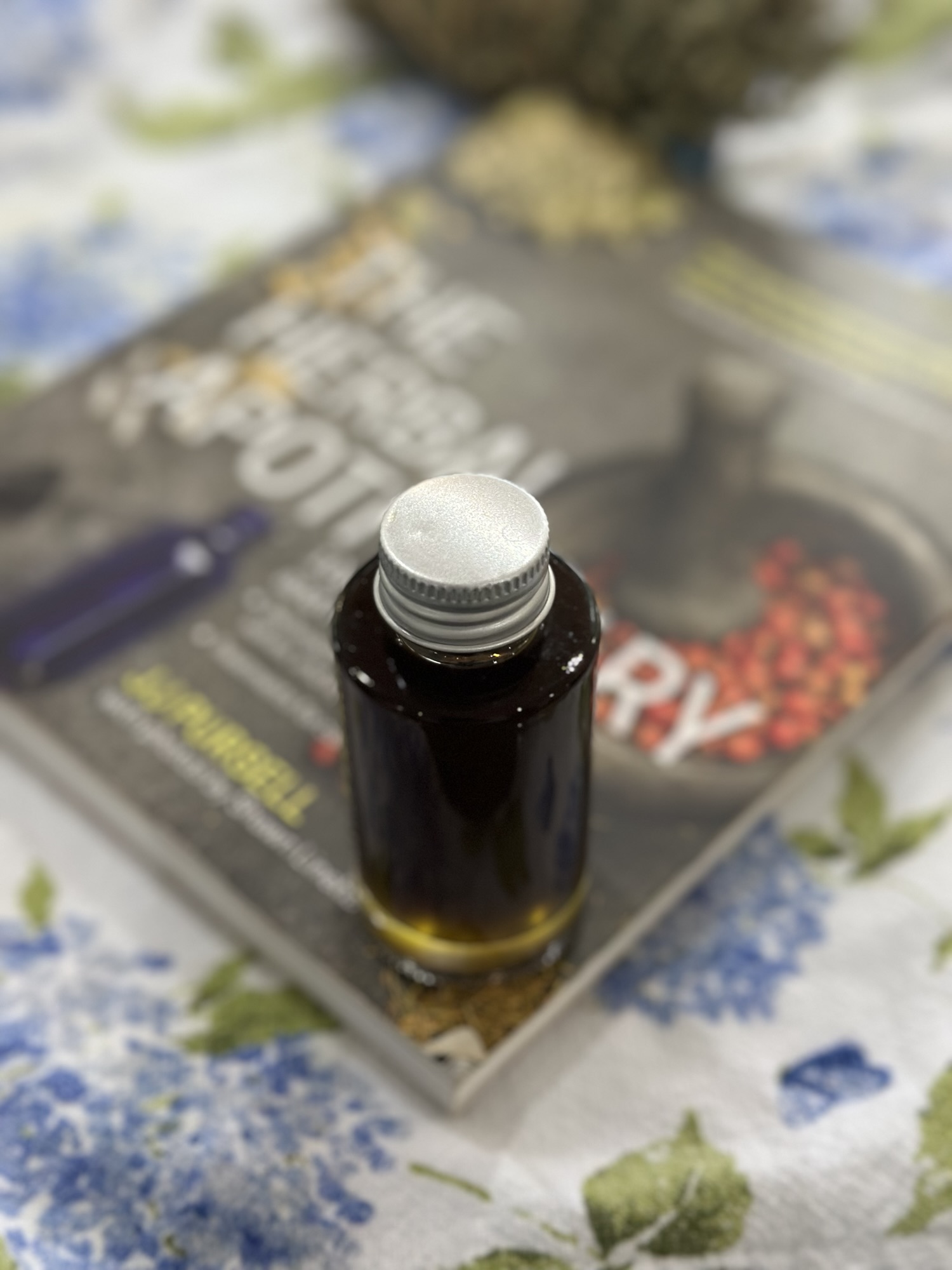 Okay, now lets get into this recipe, the base oil I’m using is fractionated coconut oil because of its lightweight structure, also I have previously infused my fractionated coconut oil with fenugreek, dried nettle leaves, dried lavender flower and dried rosemary for almost a month. For good measure, scientific evidence indicates that it is one of the oils that can penetrate the hair fibres due to its triglycerides according to this research – https://www.mdpi.com/2079-9284/11/2/64#B36-cosmetics-11-00064.