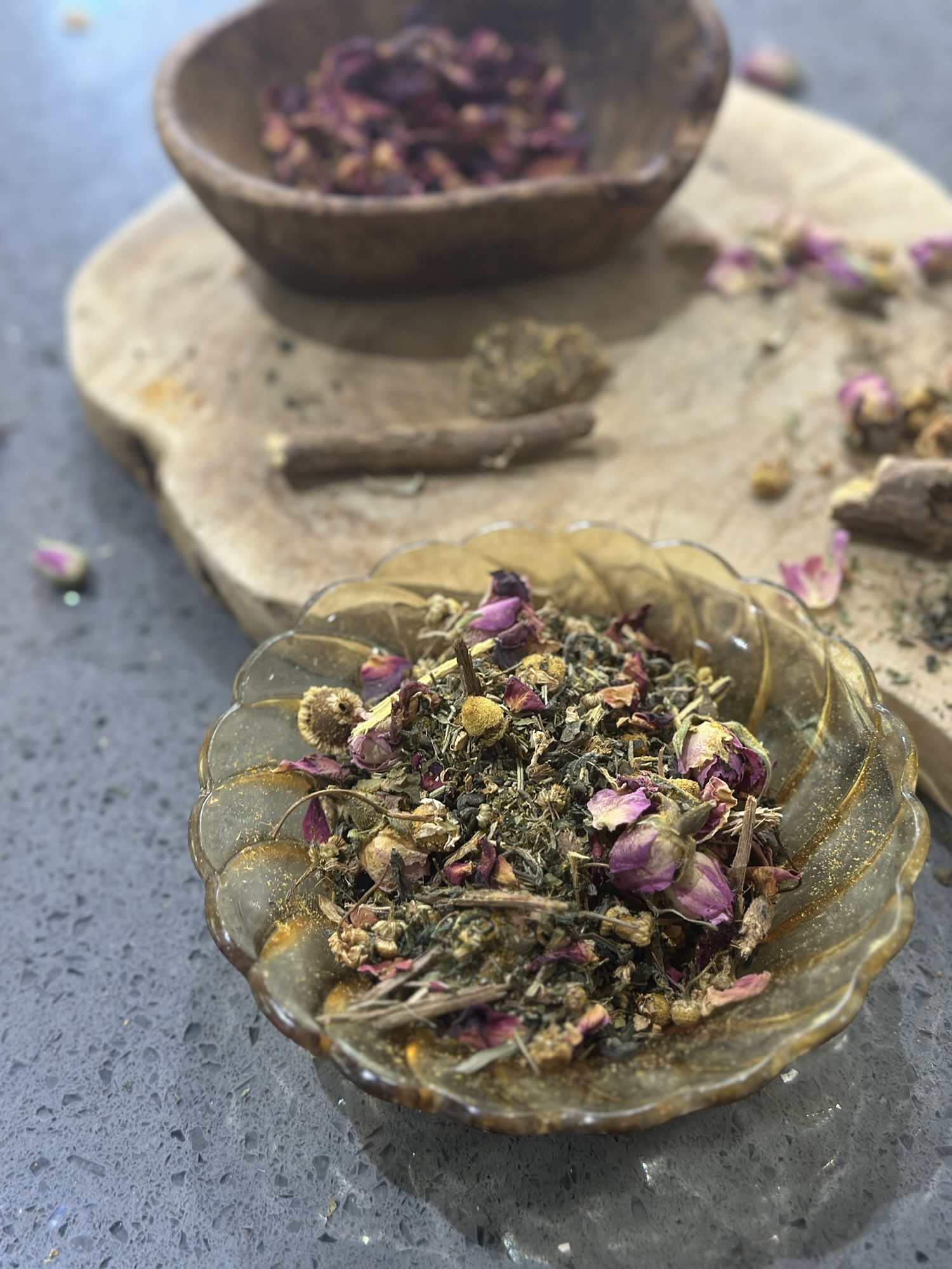 I used equal parts of all the herbs and flowers.